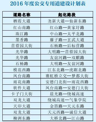 在今年的公交专用道建设计划中,珠江路、光华路、苜蓿园大街、卡子门大街、双龙大道等早晚高峰容易堵车的核心路段都被纳入其中,这些道路建设完成后,南京市公交专用道将实现成网成环。