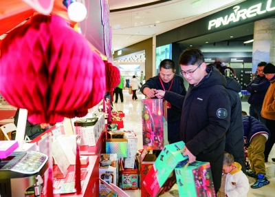 1月26日,不少市民在南京金陵天地的年货节现场购物,日前,南京市“四季有约·数享新春”消费季在此启幕。
