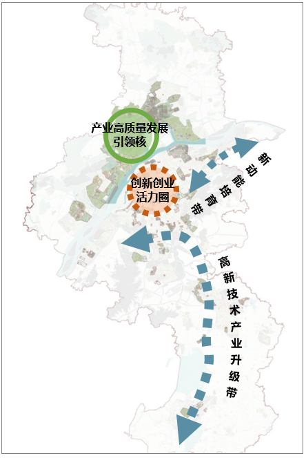 图3—1 南京高新区“一核一圈两带”空间布局示意图