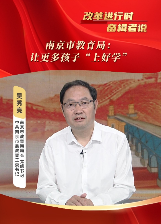 走进本期《改革进行时•奋楫者说》演播室的嘉宾是中共南京市委教育工委书记,南京市教育局局长、党组书记吴秀亮。