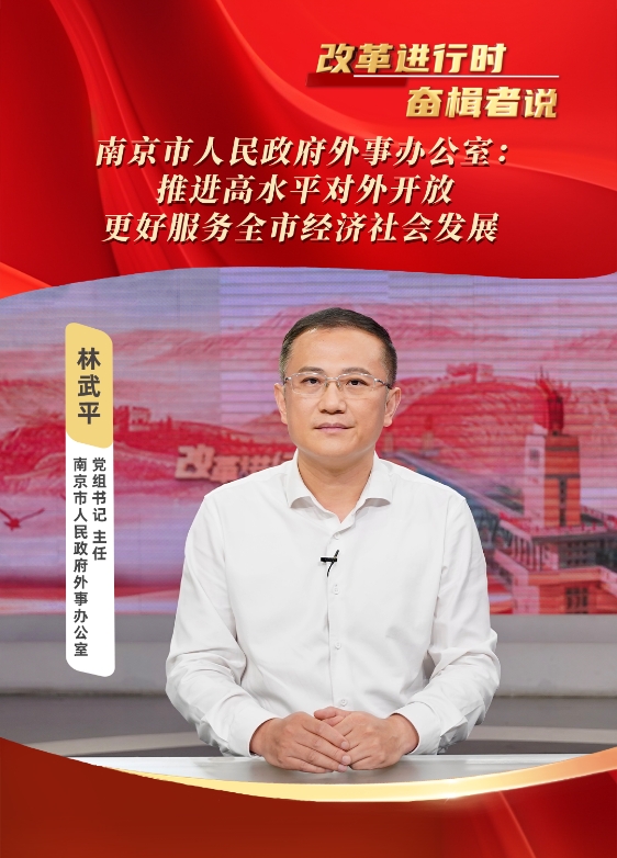 走进本期《改革进行时•奋楫者说》演播室的嘉宾是南京市人民政府外事办公室党组书记、主任林武平。