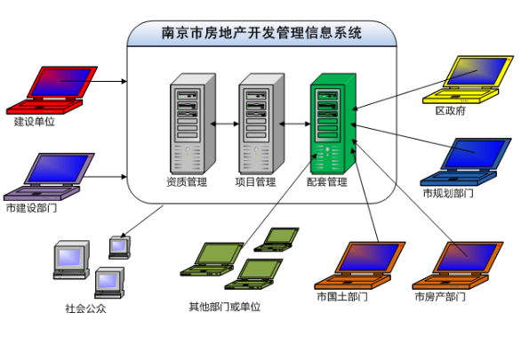 该系统平台纳入南京市房地产开发管理信息系统,项目所需的基础信息和数据从系统中的开发企业资质管理和开发项目手册管理等系统中提取,实现数据互通共享,并提供信息发布、公示等功能。