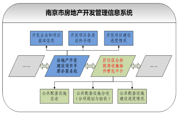 市建委负责建设南京市居住区公共配套设施管理平台(以下简称系统平台),市各有关部门、区政府、各行业管理单位和专营单位在系统平台上协同工作。