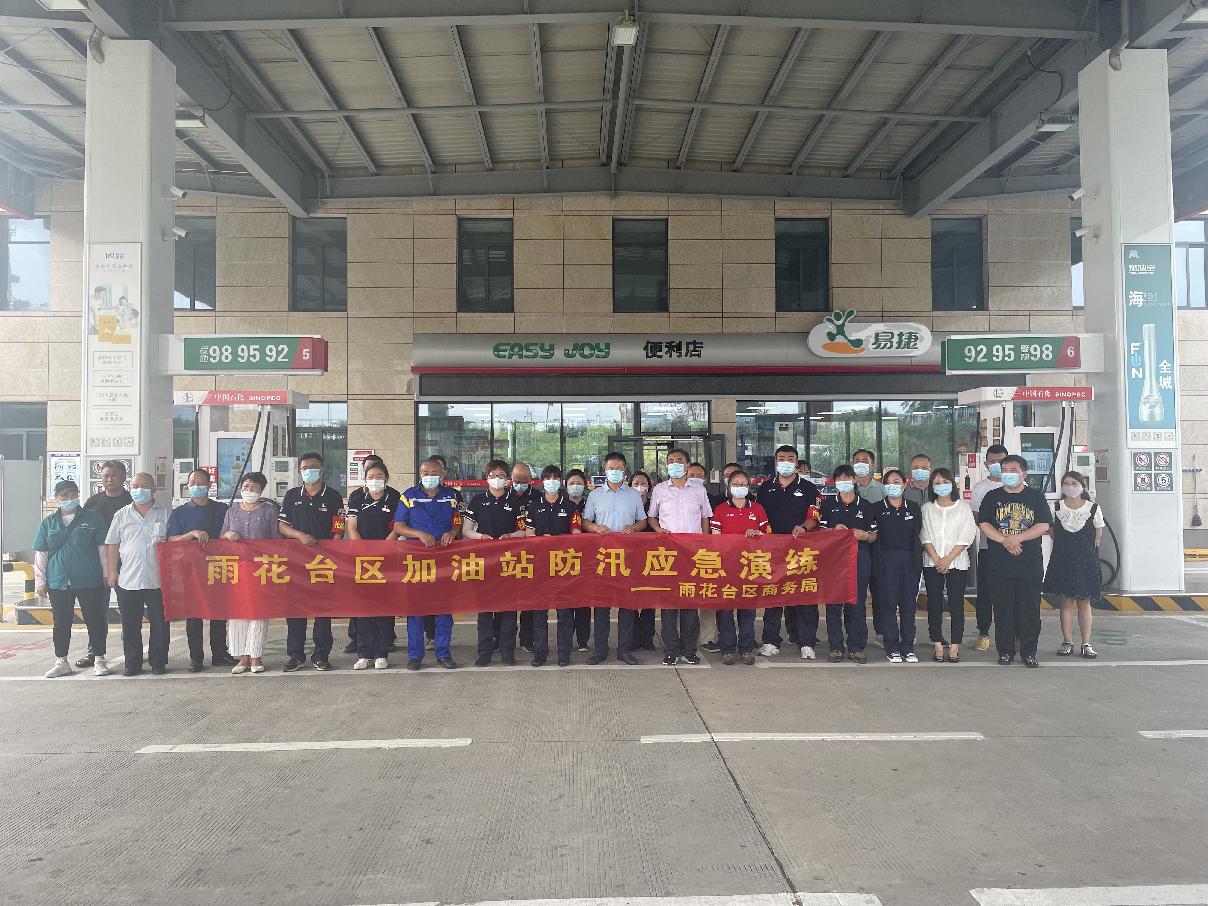 近年来,雨花台区牢固树立“安全第一、预防为主、综合治理”方针,以落实企业安全主体责任为抓手,不断深化基础建设,全面完善事故预警和应急救援预案。7月27日,为进一步提升加油站汛情处置、应急救援能力,切实提高员工防汛素质和队伍实战能力,南京市雨花台区商务局组织全区18家加油站主要负责人开展了2022年度雨花台区加油站防汛应急演练,并组织润泰市场、长江装饰城、红太阳装饰城等大市场安全负责人,以及局属基层单位分管安全的负责人现场观摩。