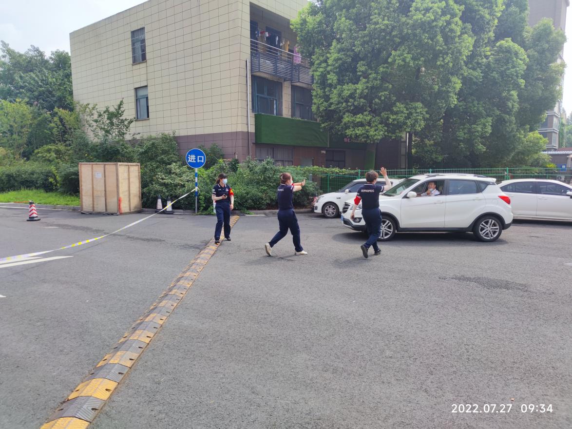 随后警戒组接到指令在主要进出口使用警戒带、警示锥划定警戒区域,停止营业、车辆不得进入,有车辆到达警戒区域,警戒组负责拦车并劝阻其停车到停车场。