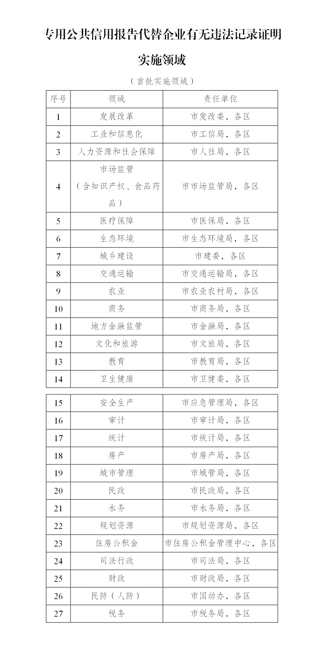 相关文件:市政府办公厅印发关于推行企业以专用公共信用报告代替有无违法记录证明实施方案的通知