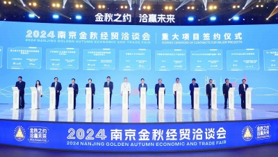 9月24日,2024南京金秋经贸洽谈会开幕式在南京国际博览会议中心举行,48个有代表性的重大项目现场签约,投资额达677亿元。