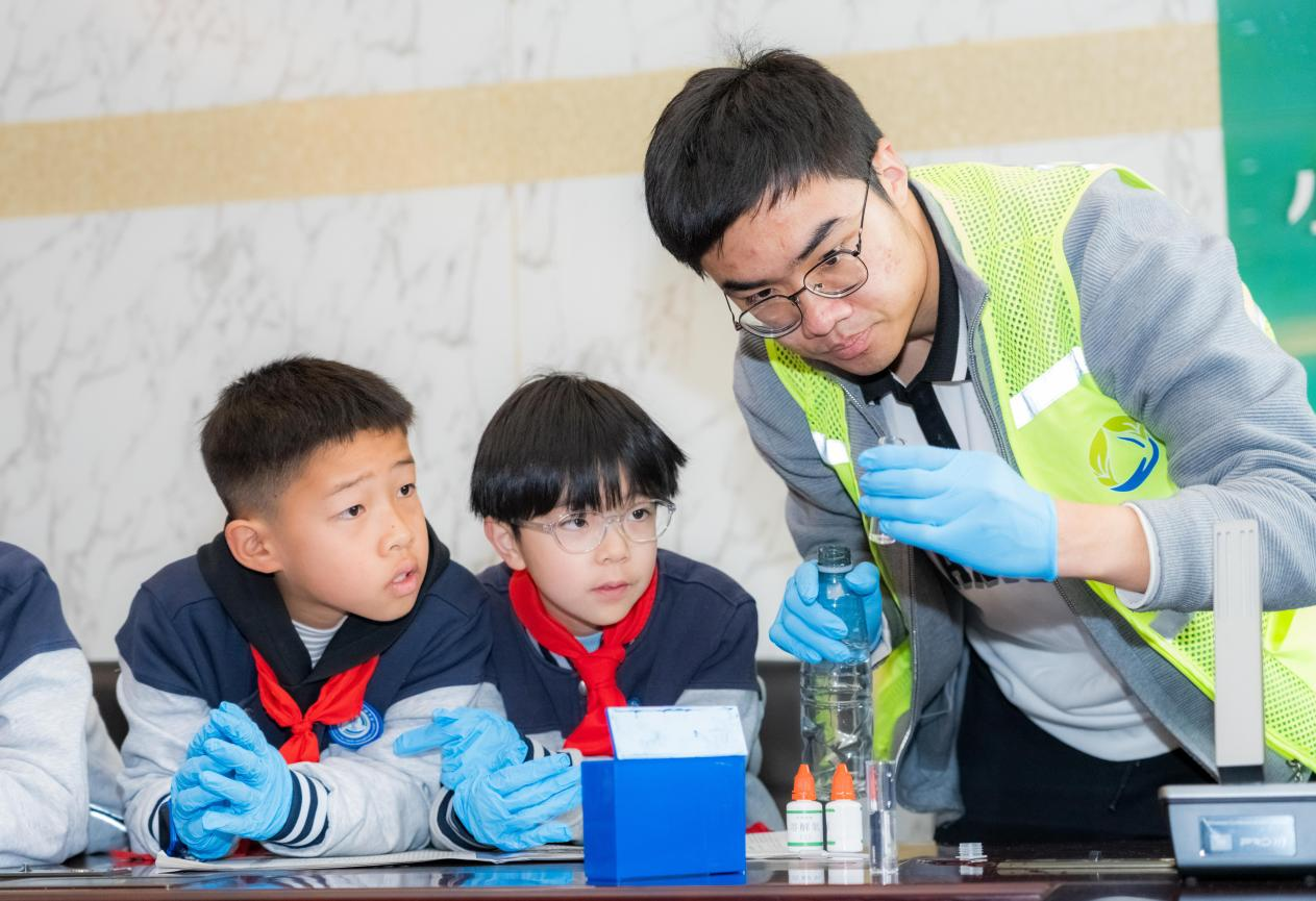 “原来浑浊的水经过这些步骤就能变清澈!”在污水净化实验区,孩子们亲自动手过滤、沉淀模拟污水,直观感受水资源保护的不易。室内课堂上,来自南京工业大学的大学生志愿者化身“水知识导师”,通过趣味问答带领孩子们畅游水法规的知识海洋;而在“水卫士”闯关挑战区,节水抢答和护水模拟让现场欢笑声不断。