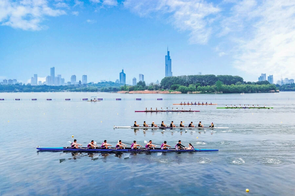 4月18日,2026南京赛艇大师赛暨青少年赛艇俱乐部联赛在玄武湖开赛,国内外40多家俱乐部、近900名赛艇爱好者同湖竞技、劈波斩浪,在春日的湖光山色中尽享运动之乐与自然之美。