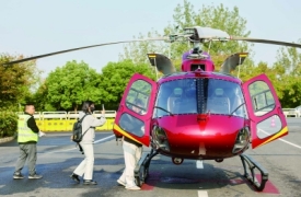 10月29日上午,一架红色空客AS350B3“小松鼠”直升...