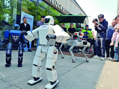 户外展示区,来自南京机器人企业的多款前沿机器人集中亮相。