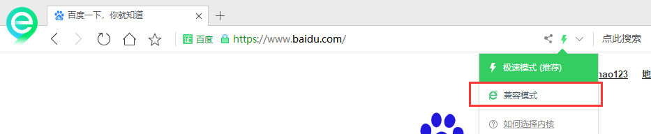 3.使用360安全浏览器,打开网站后,切换到兼容模式。