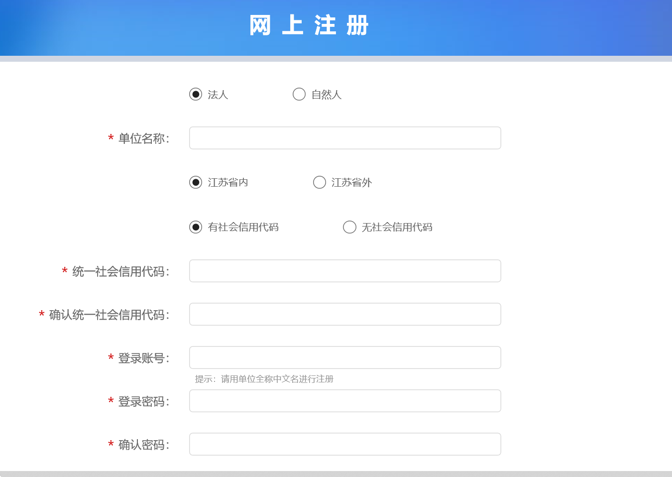 一、新用户(未在南京市公共资源交易平台注册过的用户)注册