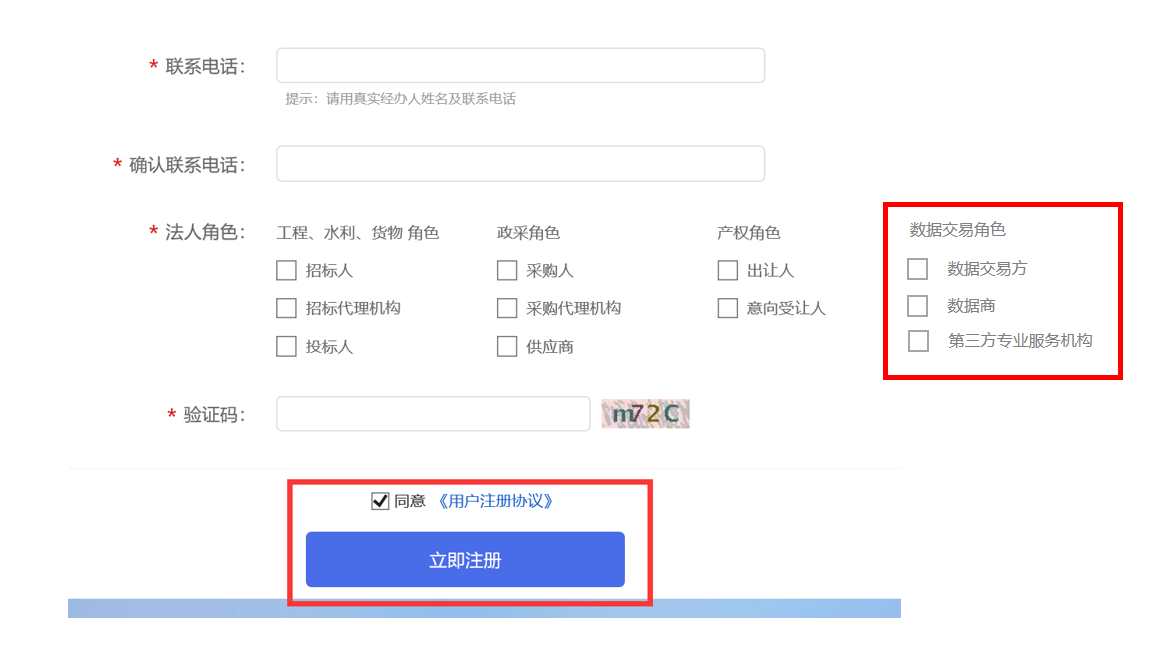 注意:法人角色应根据实际参加数据交易的角色进行选择,可以多选,其中: