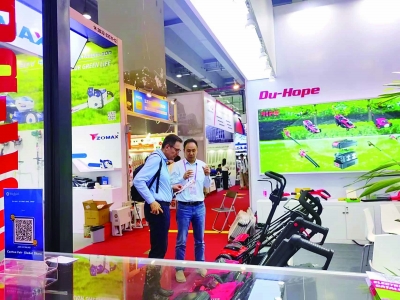 4月15日,广交会开幕,南京参展企业向国外客商介绍产品。