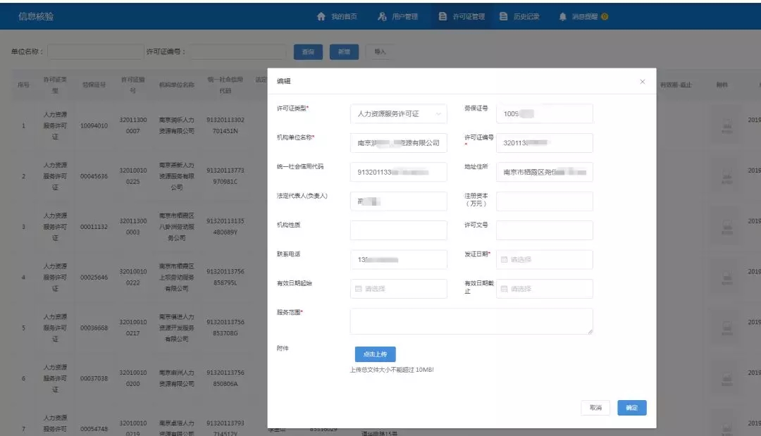 今年8月初,除营业执照外,人社局“人力资源服务许可证”“劳务派遣许可证”也纳入信息核验平台。如此,办事人办理涉及提交营业执照、人力资源服务许可证及劳务派遣许可证的事项仅凭统一社会信用代码即可办理,再没有必要拎一袋子证件。