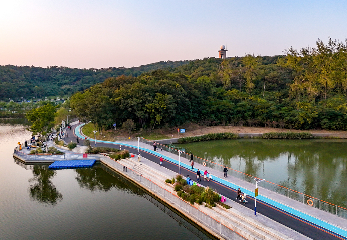 近日,南京江北新区龙王山郊野公园“上山路”步道基本改造完工,市民在此休闲运动享受周末时光。此处步道修整一新,划分慢跑与步行区并设百米提示,新增观景平台、文化橱窗等,成为周边居民亲近自然、散步赏景的好去处。