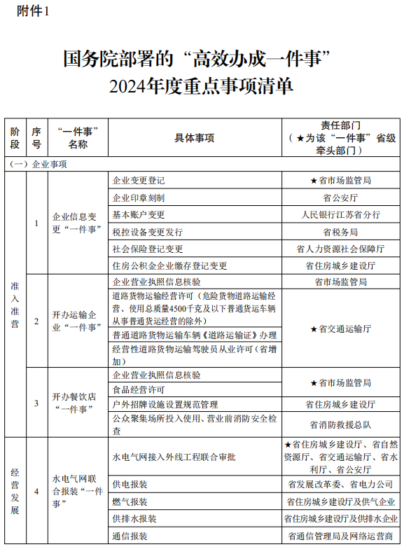 3.省部署的“高效办成一件事”2024年度重点事项清单