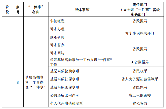 (八)持续优化重点事项服务效能。依托“高效办成一件事”统一受理端,通过省数字政府政务中台数据流转,实现审批业务跨部门、跨层级、跨地区敏捷打通,线上收件、后台流转、进度查询等功能敏捷提供,压缩申请材料,优化办事流程。强化“高效办成一件事”清单管理,对照国务院和省确定的重点事项任务,逐年优化提升一批、集中攻坚一批、主动拓展一批,滚动实施、压茬推进。
