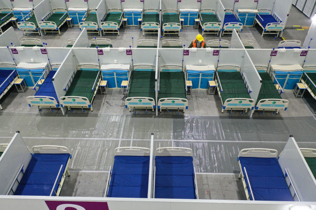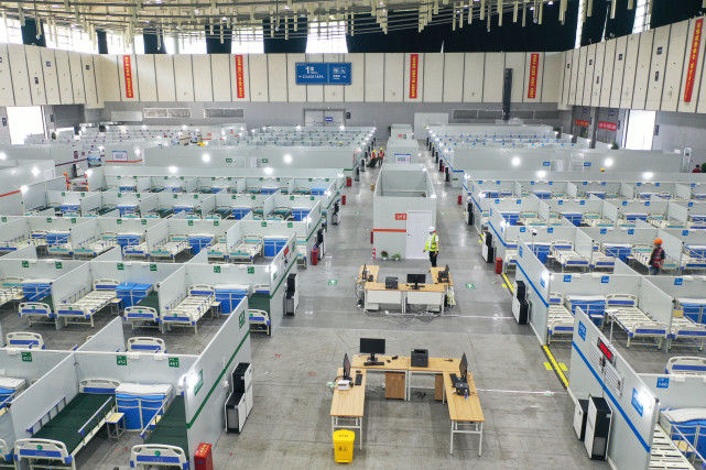4月11日拍摄的南京青奥体育公园体育馆内的方舱医院