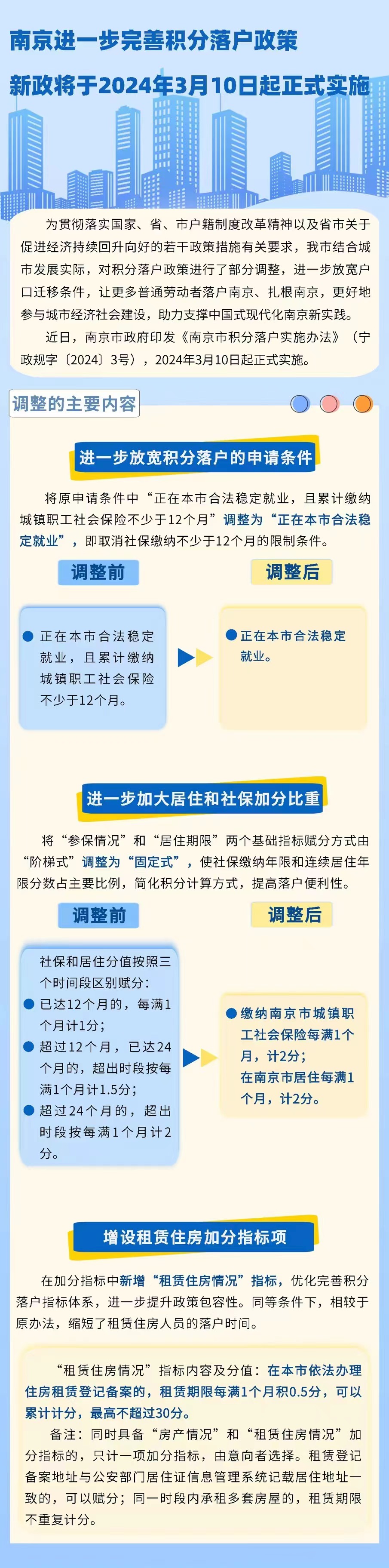 图解:南京进一步完善积分落户政策 新政将于2024年3月10日起正式实施