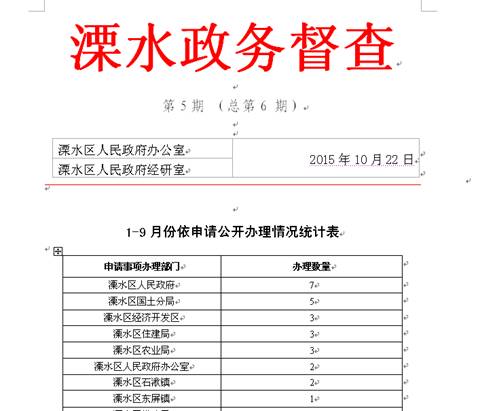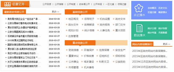 1.加强组织推进,提升工作水平。继续将信息公开工作纳入全区绩效考核,进一步完善考核指标体系,把重点领域公开、政策解读、依申请公开等列入考核重点。工作中注重开展常态化培训督查,不断提升各部门政府信息公开水平。2015年10月,召开全区电子政务推进会,对无纸化办公、政府站群上线、信息公开等工作情况进行点评。12月,结合一年以来工作,政府办召开政府信息公开和网站绩效评估业务培训会,解读考核指标并对各部门存在的突出问题给出整改意见。同时,采取网上督查与文件通报的方式,将省市领导信箱办理、政府信息公开、下级请示办理等政务信息资源整合共享一并纳入督查通报内容,进一步促进相关工作融合,形成工作合力。2016年3月,精心制作“溧水区2015年政府信息公开报告单”在区政府门户网站、“微溧水”微信公众号、“溧水发布”政务微博公开亮相。