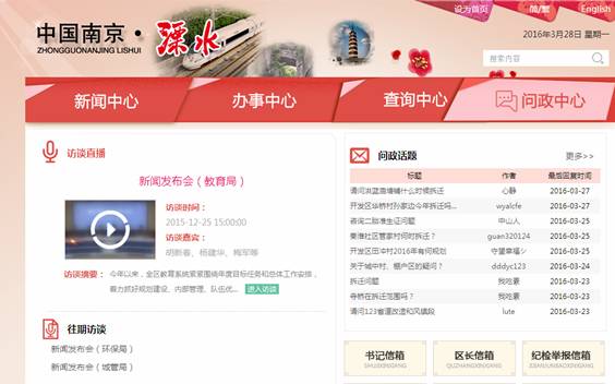 3.加强互动回应。积极主动回应社会关切的问题,利用区政府门户网站,通过“民意征集”、“网上调查”、针对涉及群众切身利益的重要决策,在政策措施出台前征求意见。通过“网络问政平台”,倾听民声、集中民智、关注民意、服务民众。对一周热帖和热门问政部门进行统计公布,为政府决策提供信息服务。借助书记信箱、区长信箱、12345政务行风热线,听取群众呼声,认真处理“溧水学区调整”、“占地违建承担责任”、“溧水旅游年卡畅游溧水”等群众关心的问题。发挥政务微博微信传播速度快、定位准确的特点,及时主动回应社会舆情,确保在应对重大突发事件时不失声、不缺位。