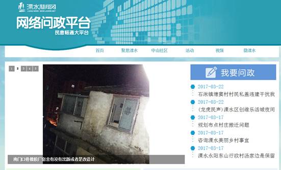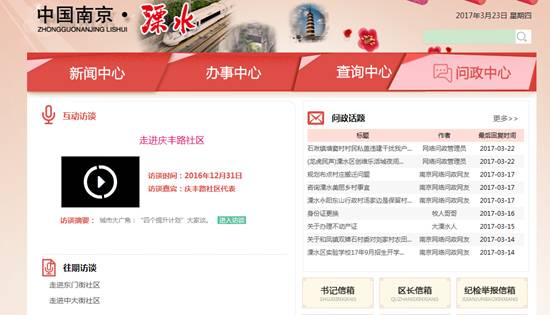 9、加强互动回应。积极主动回应社会关切的问题,利用区政府门户网站,通过“民意征集”、“网上调查”、针对涉及群众切身利益的重要决策,在政策措施出台前征求意见。通过“网络问政平台”,倾听民声、集中民智、关注民意、服务民众。对一周热帖和热门问政部门进行统计公布,为政府决策提供信息服务。借助书记信箱、区长信箱、12345政务行风热线,听取群众呼声,认真处理“溧水学区调整”、“占地违建承担责任”、“溧水旅游年卡畅游溧水”等群众关心的问题。发挥政务微博微信传播速度快、定位准确的特点,及时主动回应社会舆情,确保在应对重大突发事件时不失声、不缺位。
