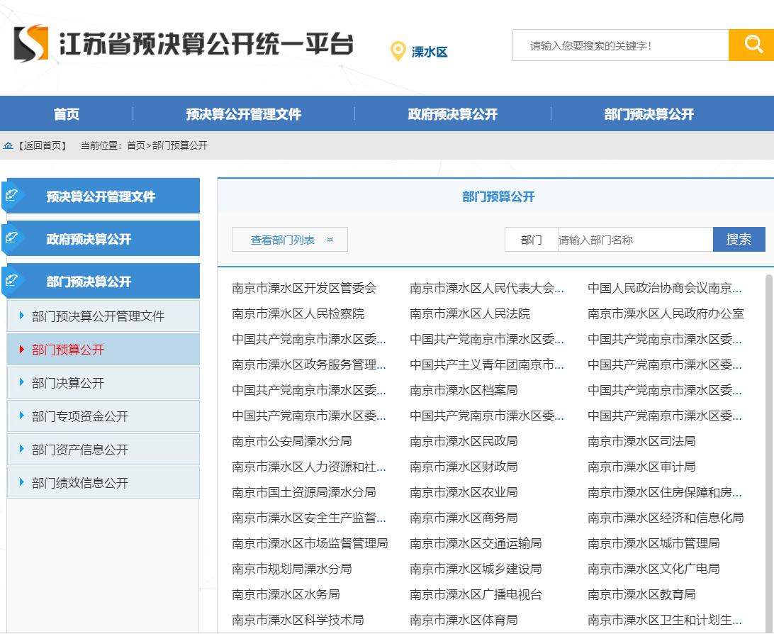 推进政府预决算信息公开。扩大预决算公开范围,依托江苏省预决算公开统一平台,公开区政府和各部门单位的预决算、三公经费信息,分级分类集中公开,方便公众查阅和监督。
