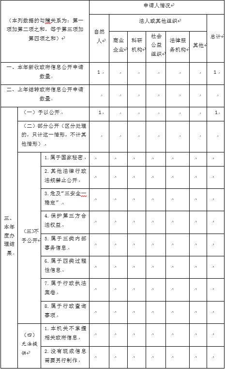 三、收到和处理政府信息公开申请情况