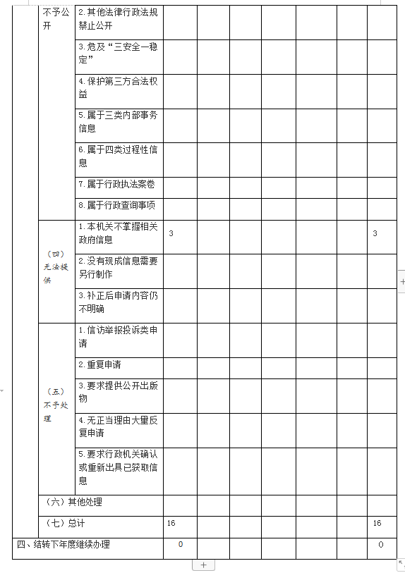 我中心的政府信息公开工作严格按照《条例》和上级部门的总体要求,妥善处理公开与保密的关系,合理界定信息公开范围,做到积极稳妥,及时准确,公开、公正、便民。经统计,2020年共办理12345工单243件;共接待人民群众来信来访43批90人次,受理上级转交办信访29件,和谐系统转交信访件7件,均在第一时间办结,办结率100%;。2020年共受理依申请公开事项16件,其中予以公开10件,部分公开3件,无法提供3件,全部在法定时限内予以办结。无涉及我中心信息公开方面的行政复议和行政诉讼案件。