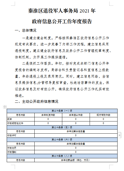 秦淮区退役军人事务局2021年政府信息公开工作年度报告