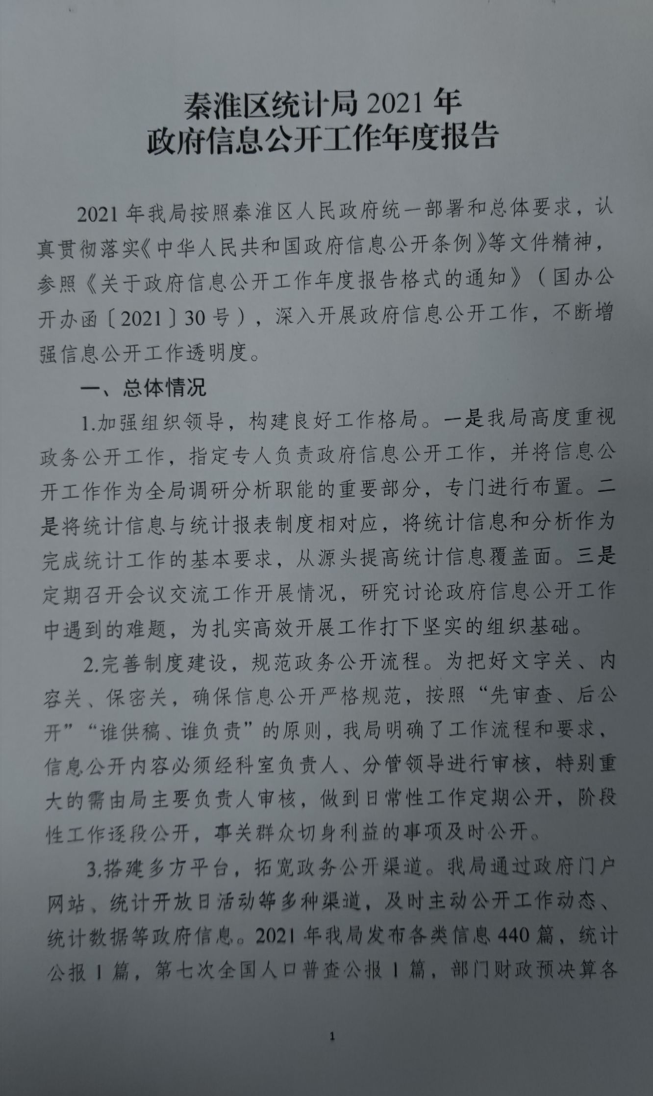 秦淮区统计局2021年政府信息公开工作年度报告.docx