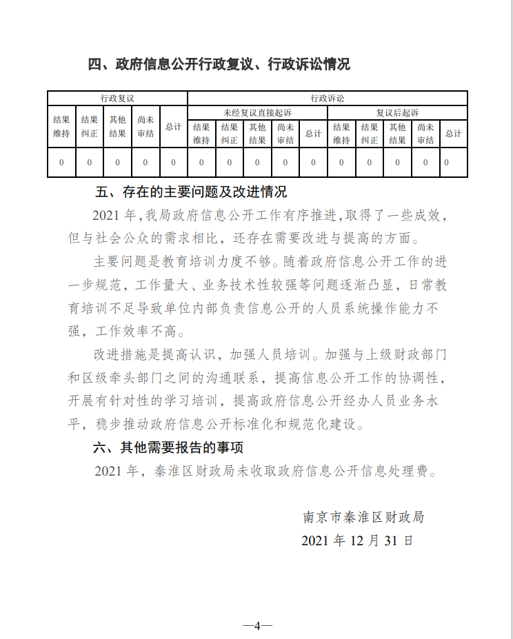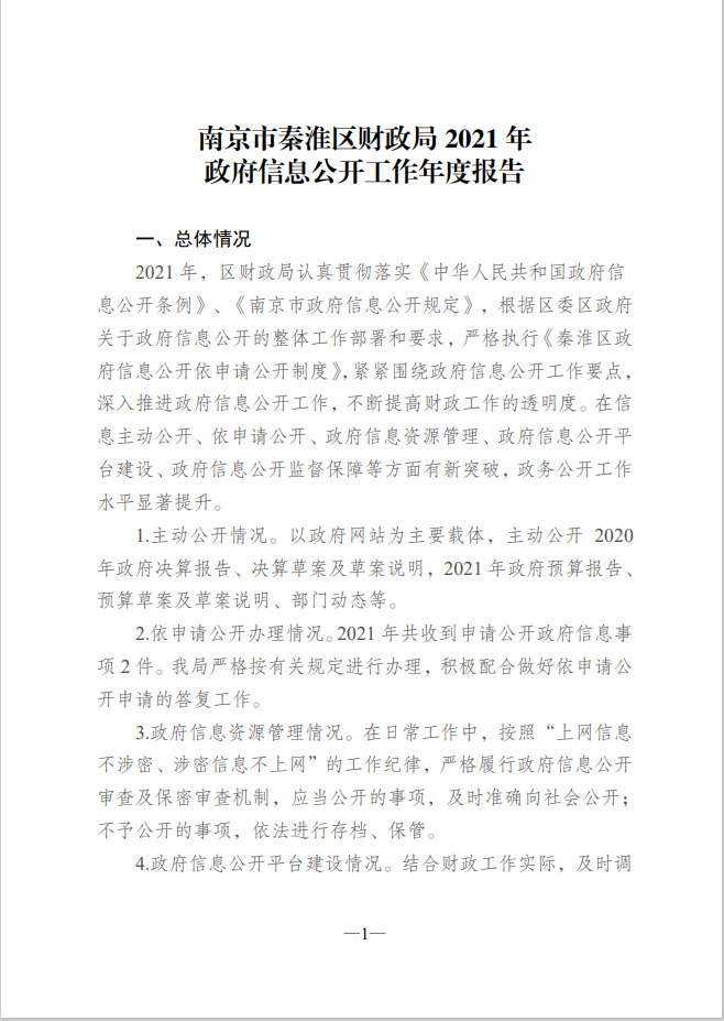 南京市秦淮区财政局2021年政府信息公开工作年度报告