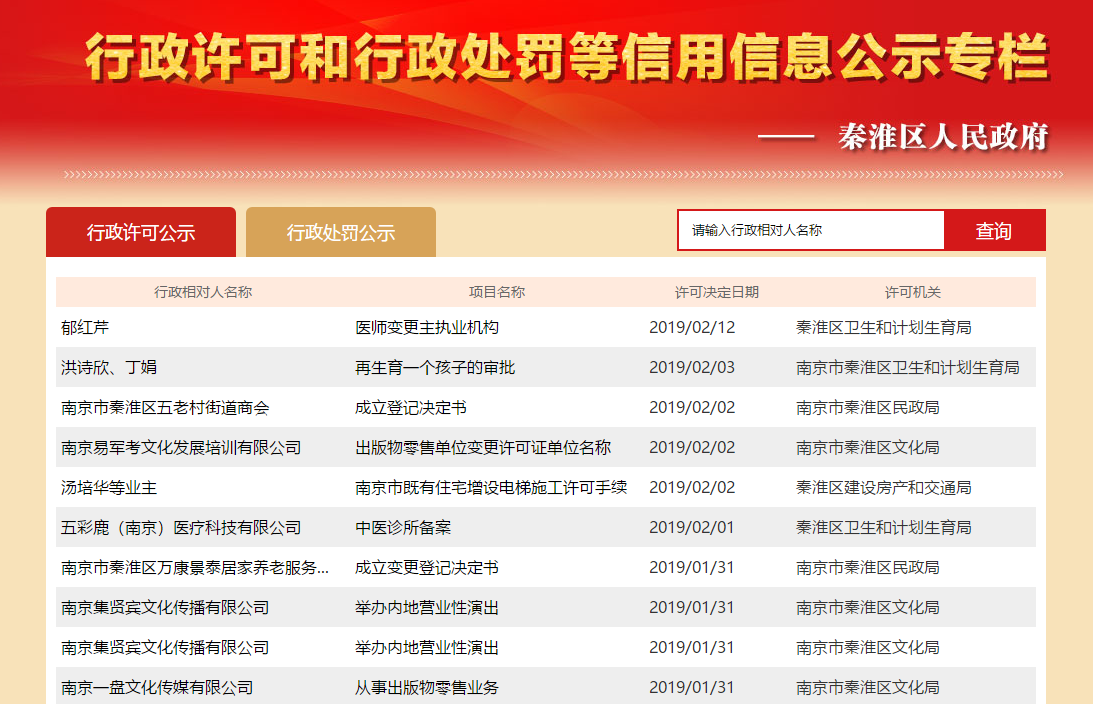 4、加大行政执法信息的公开力度。为进一步保障公众的合法权益,提高公众对行政执法工作的认知度,秦淮区不断加大对行政许可和行政处罚信息的公开力度。2018年,区行政执法部门在政府门户网站上发布各类行政许可信息9477条;行政处罚信息295条。