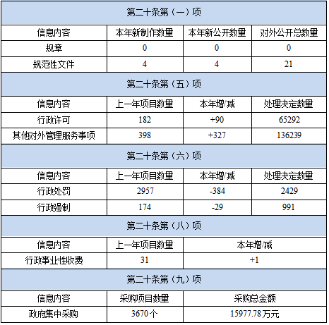 二是强化政府信息主动公开。在不断完善决策公开、执行公开的基础上,同步推进会议公开、结果公开和服务公开。针对公开内容的不同情况,在新《条例》规定的基础上,确定公开时间,做到常规性工作定期公开,临时性工作随时公开,固定性工作长期公开。制定出台《栖霞区当前政务公开工作要点》和《区政府办公室关于全面推进基层政务公开标准化规范化实施方案》,明确主动公开方向和内容,规范发布流程和形式,不断推进全区政务公开工作做细做实。2020年,全区共主动公开各类信息7271条,其中政府各类文件512件,各类会议21场,“线上”直播各类活动84场。2020年由区政府决定的行政许可、行政处罚、行政强制及其他对外管理服务事项共55569项,有关基本信息、办理流程、办理材料、办理条件、设定依据以及办理进度通过江苏政务服务网向社会公开。