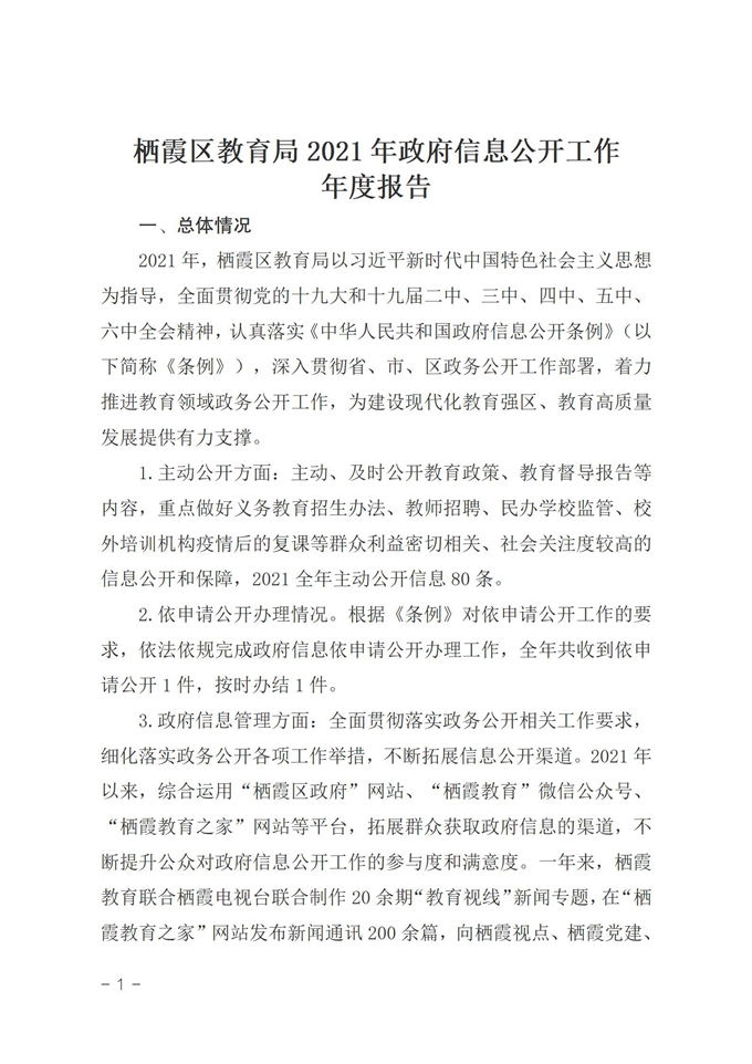 栖霞区教育局2021年政府信息公开工作年度报告