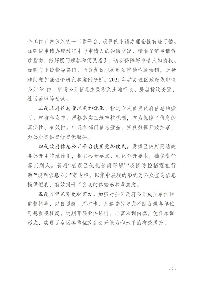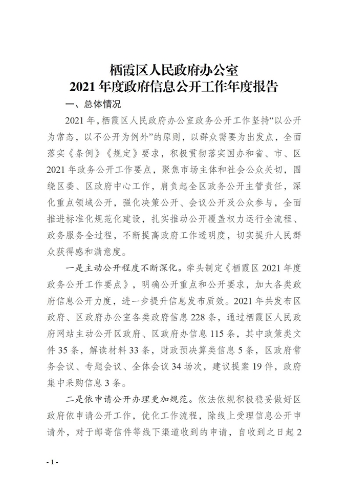 栖霞区人民政府办公室2021年政府信息公开工作年度报告