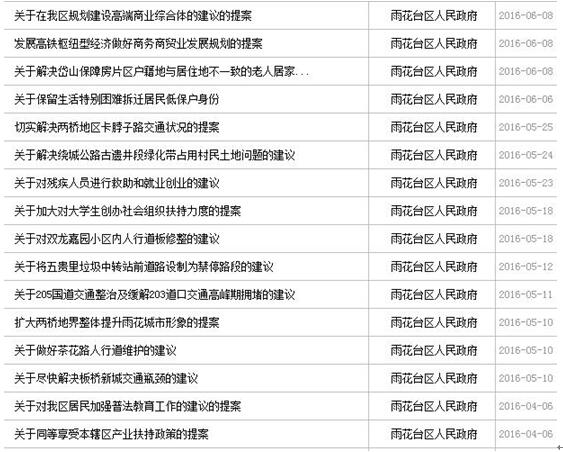 2016年我区人大代表建议和政协提案涉及住房、医疗、教育、就业创业、交通、道路建设、环境保护、社会救助、社会发展、民生工程建设等信息56件,公开了办理结果。