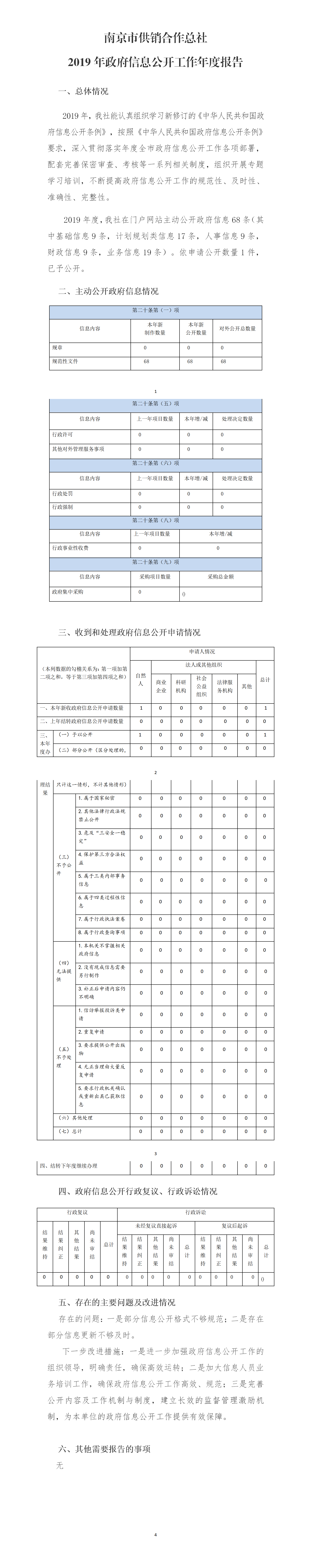 南京市供销合作总社2019年政府信息公开年报