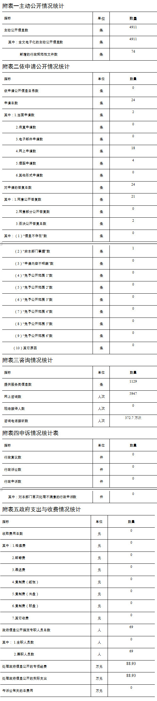 全年共收到依申请公开事项24件,受理24件,全部按期答复。其中,同意公开答复21件,不予公开2件,不属于本机关公开范围1件。所有事项的公开范围、公开程度判断准确,符合规定。未发生信息公开方面的行政复议。