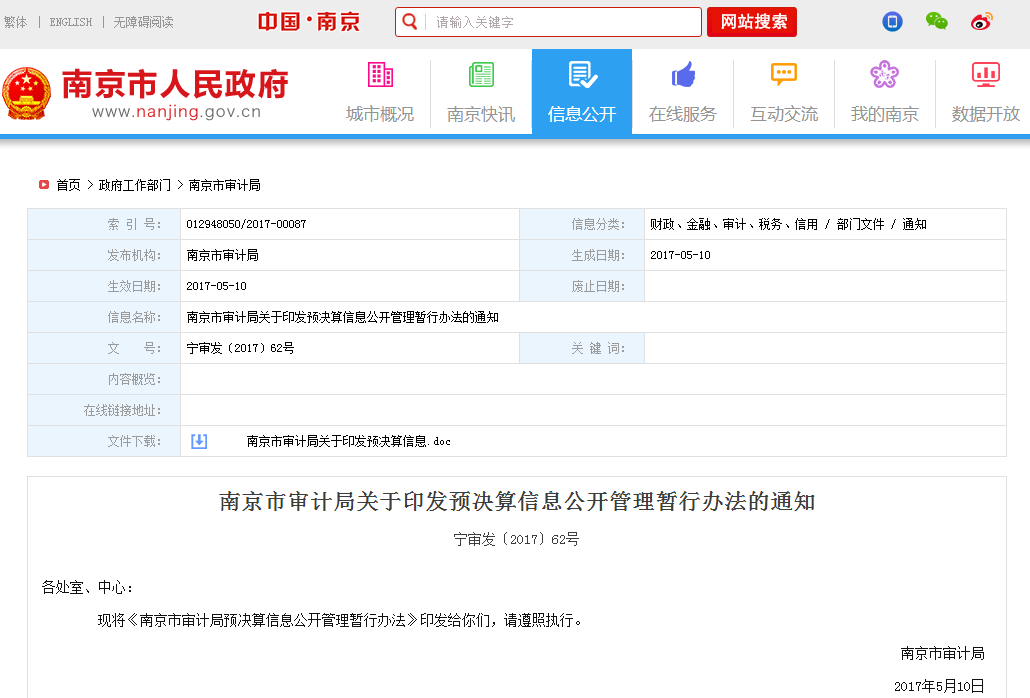 主动公开南京市审计局预决算信息公开管理暂行办法