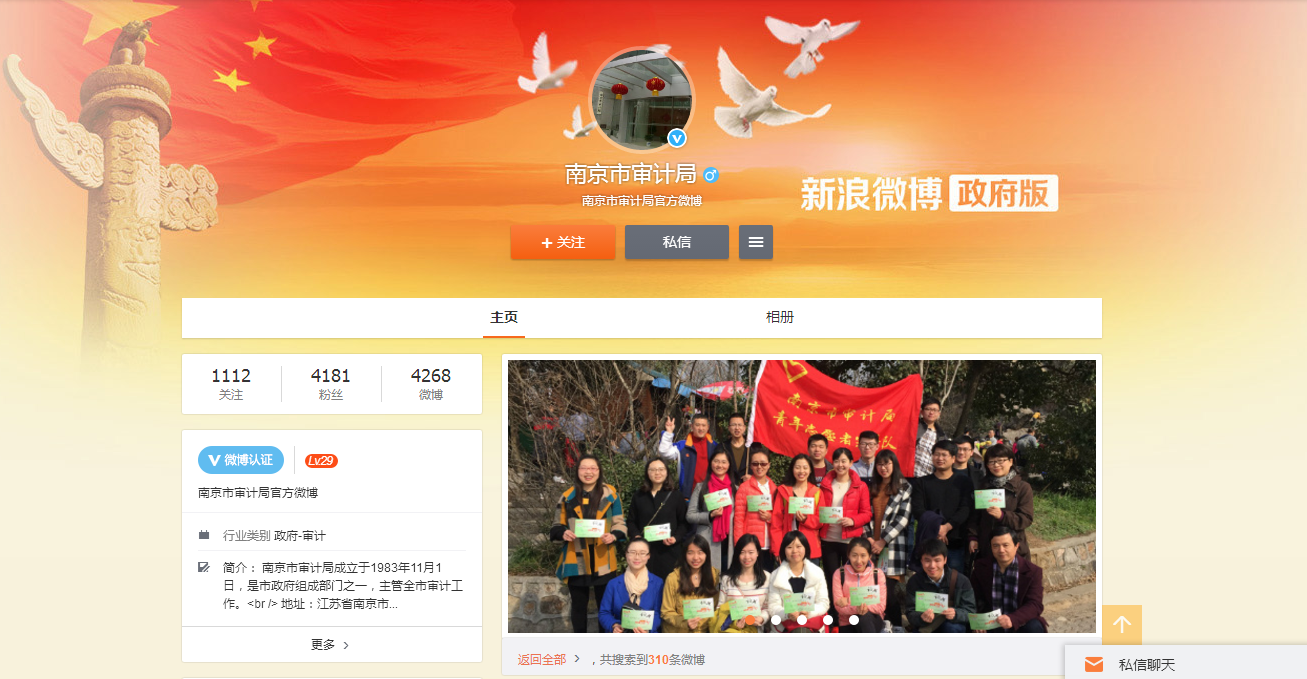 “南京市审计局”政务微博,是我局在新浪注册的唯一官方微博
