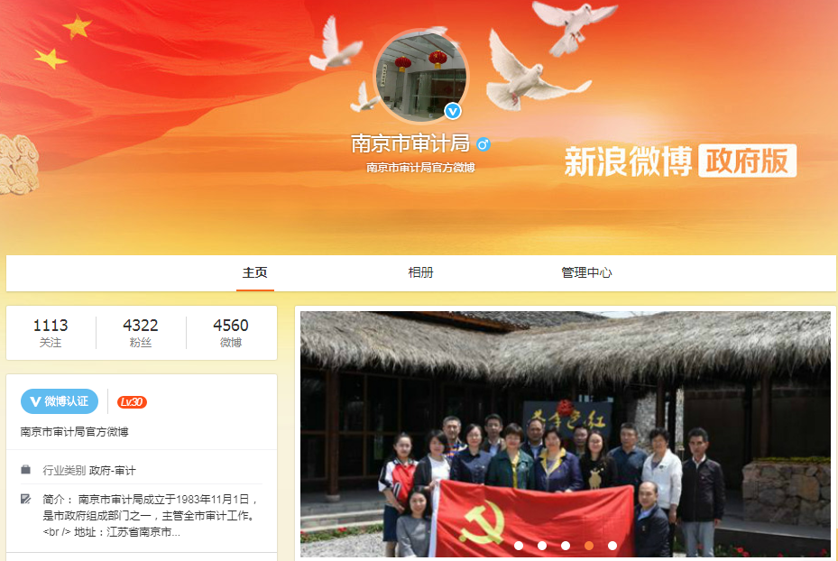 “南京市审计局”政务微博,是我局在新浪注册的唯一官方微博