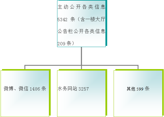 南京水务新浪微博公开信息1245条,南京水务微信公开信息241条,南京水利网站公开的各类信息3257条,省厅网站公开信息15条,利用纸媒体公开信息343条,一楼大厅公告栏公开各类信息209条,依申请公开32条。